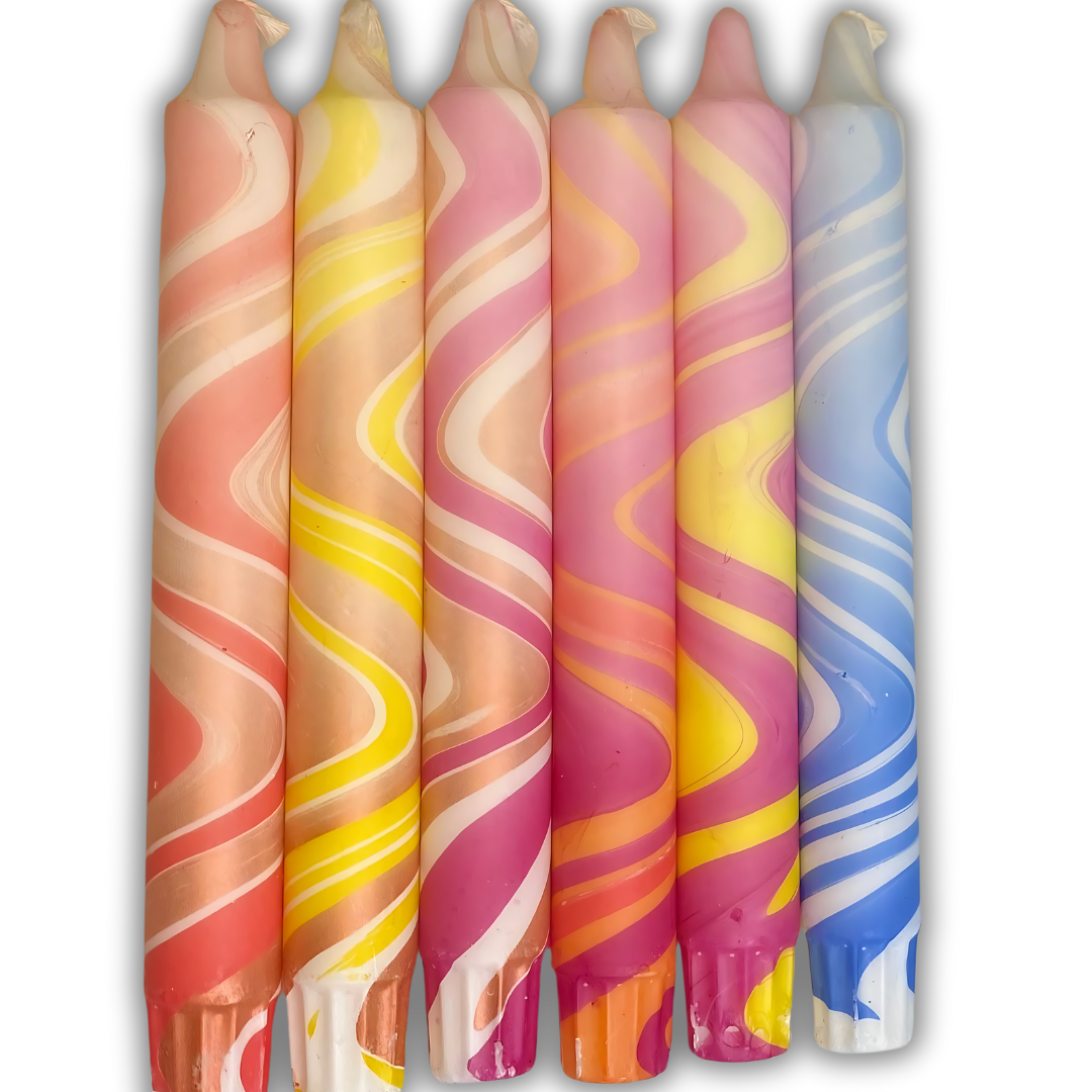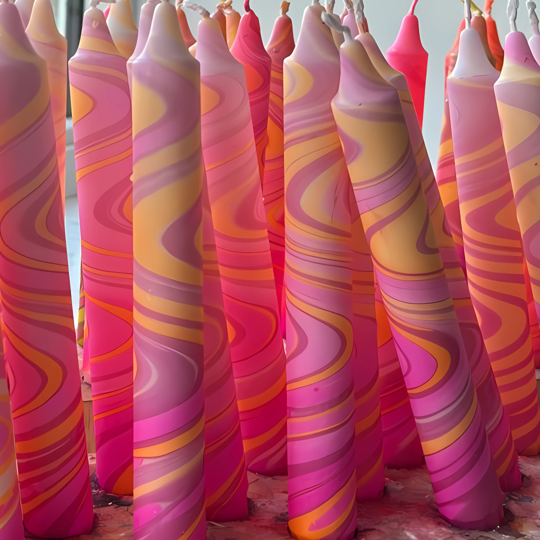 Cada vela es una declaración de individualidad; las sutiles variaciones en los tonos y la aplicación de la cera crean un efecto marmolado que garantiza que no hay dos iguales. Al elegir nuestras velas, no solo iluminas tu hogar, sino que también adquieres una pieza de decoración única en su especie.